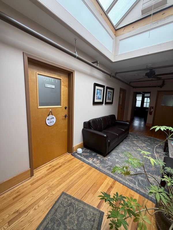 Entrance to the office is through the building door underneath the "Westville Pub" signage indicating the Bledsoe Offices. For privacy and security purposes, you will be given a passcode to enter the building.